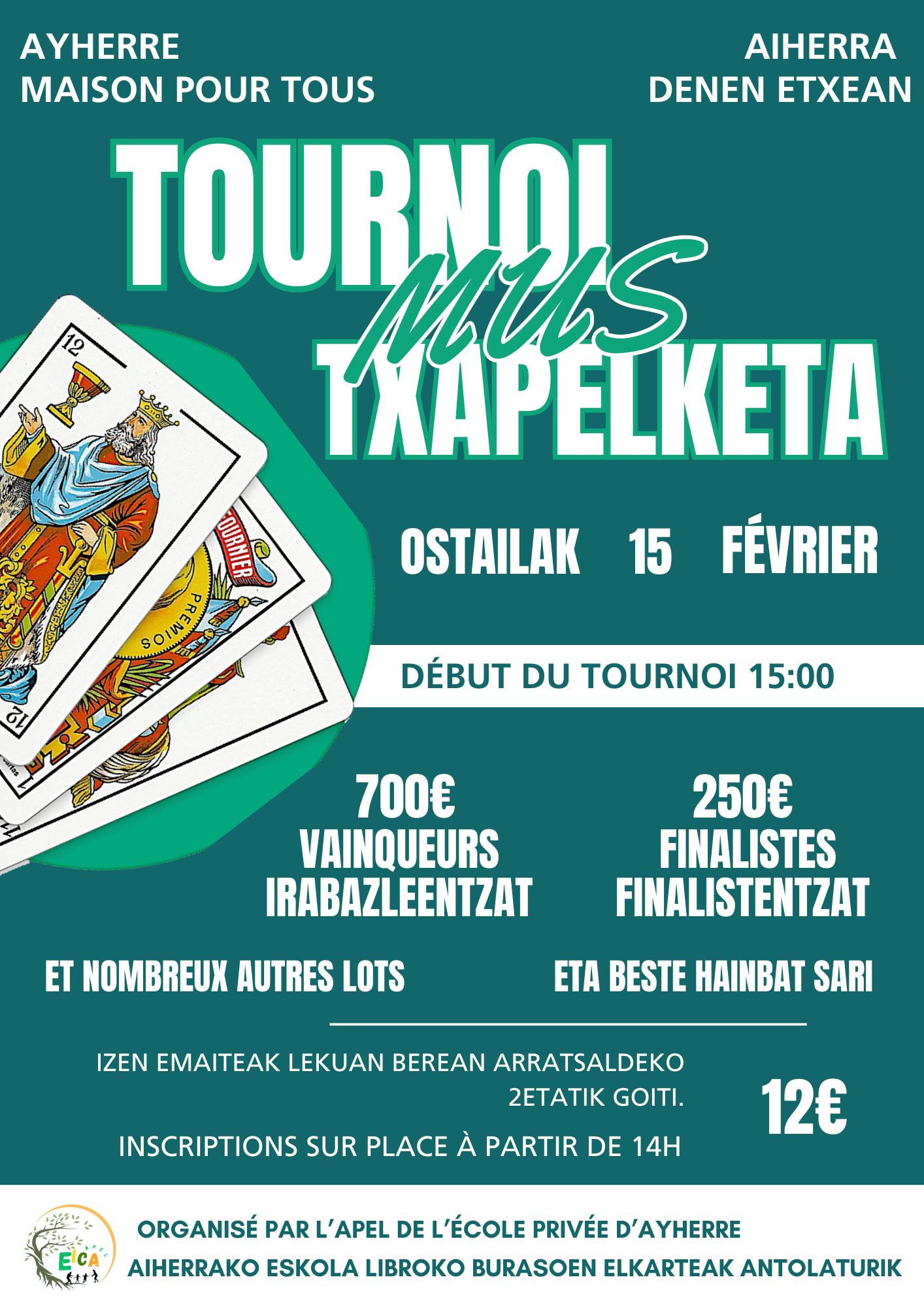 🏆Tournoi à la Maison pour Tous à Ayherre le Dimanche 15 Février