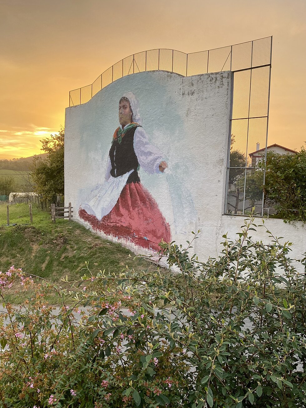 Ce peintre contemporain, connu pour travailler plus particulièrement sur la figure humaine, a créé une fresque sur le fronton dans le cadre du festival « Point de vue », dédié au street-art (art urbain) et organisé depuis 2017 par la CAPB.