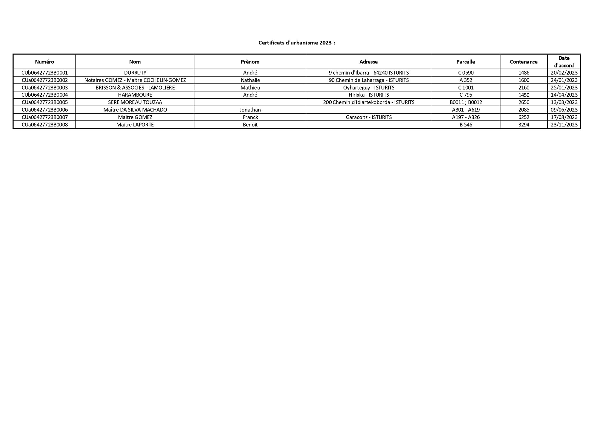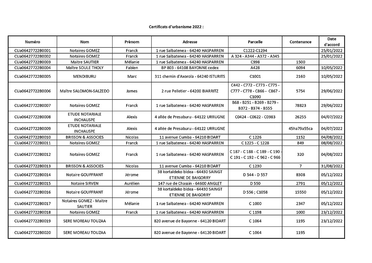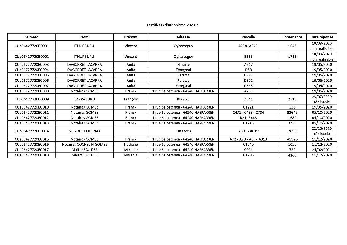 Certificats d'urbanisme