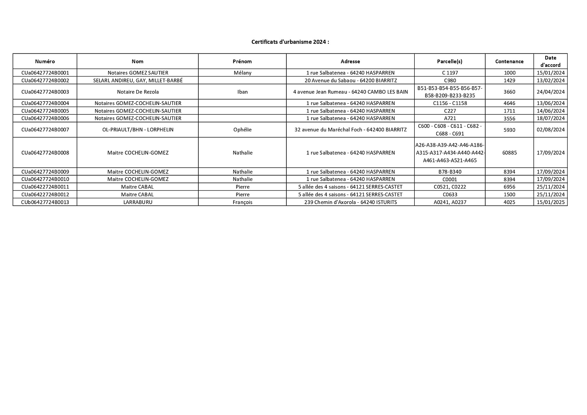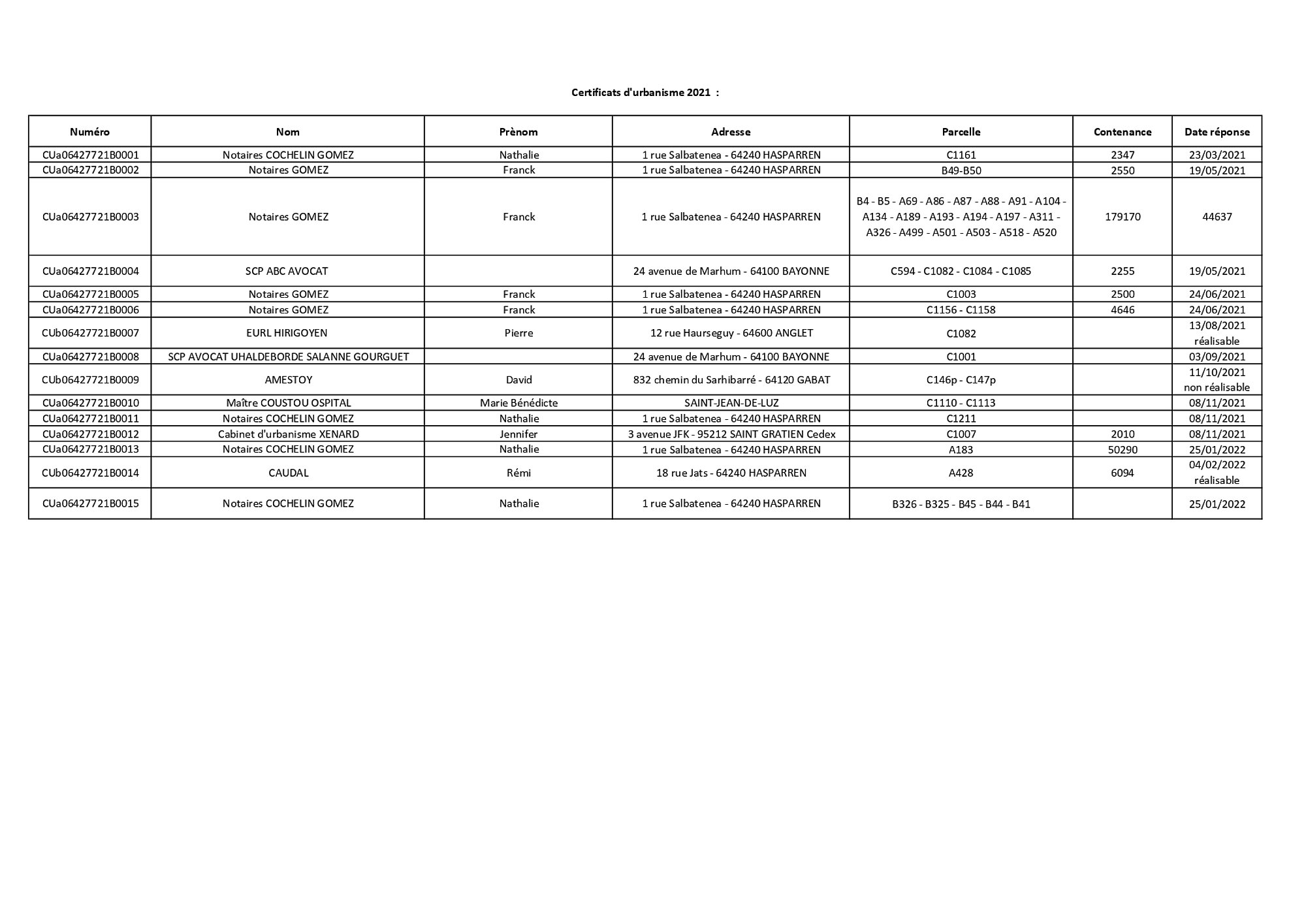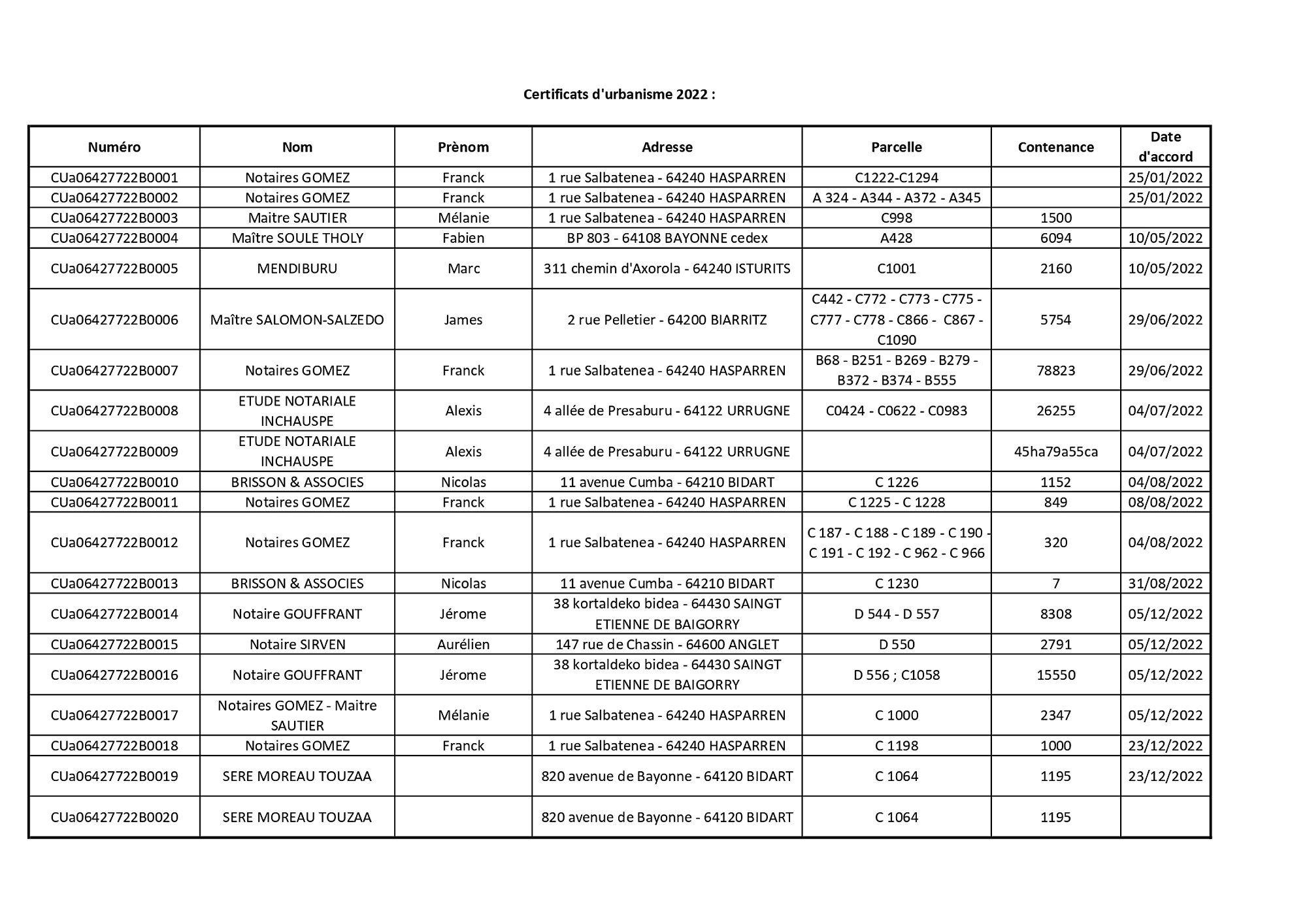 Certificats d'urbanisme
